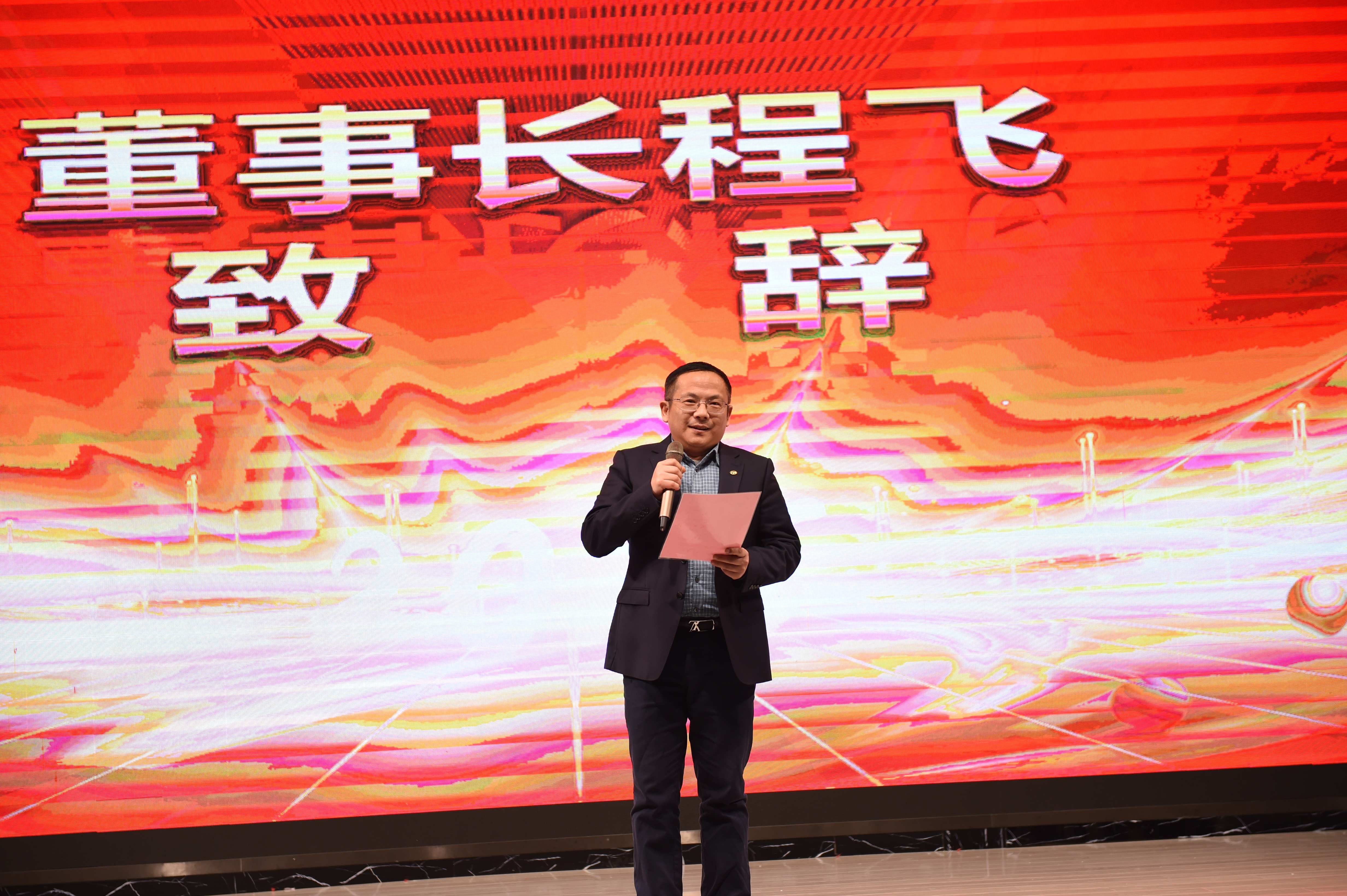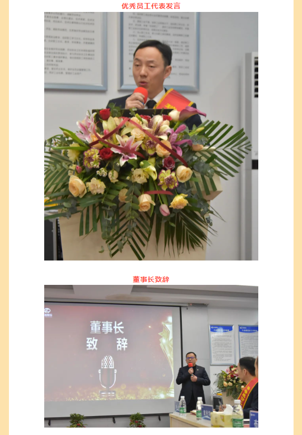 年會(huì)開始,董事長上臺(tái)致辭,共同回顧過去一年的辛勤與收獲,展望未來的機(jī)遇與挑戰(zhàn)。過去一年,全體員工團(tuán)結(jié)協(xié)作,攻堅(jiān)克難,取得了令人矚目的成績。董事長代表公司管理層,向每一位辛勤付出的員工表示衷心的感謝和崇高的敬意。希望未來,繼續(xù)發(fā)揚(yáng)拼搏精神,共創(chuàng)更加輝煌的明天。最后,對全體員工表達(dá)了真摯的新年祝福。