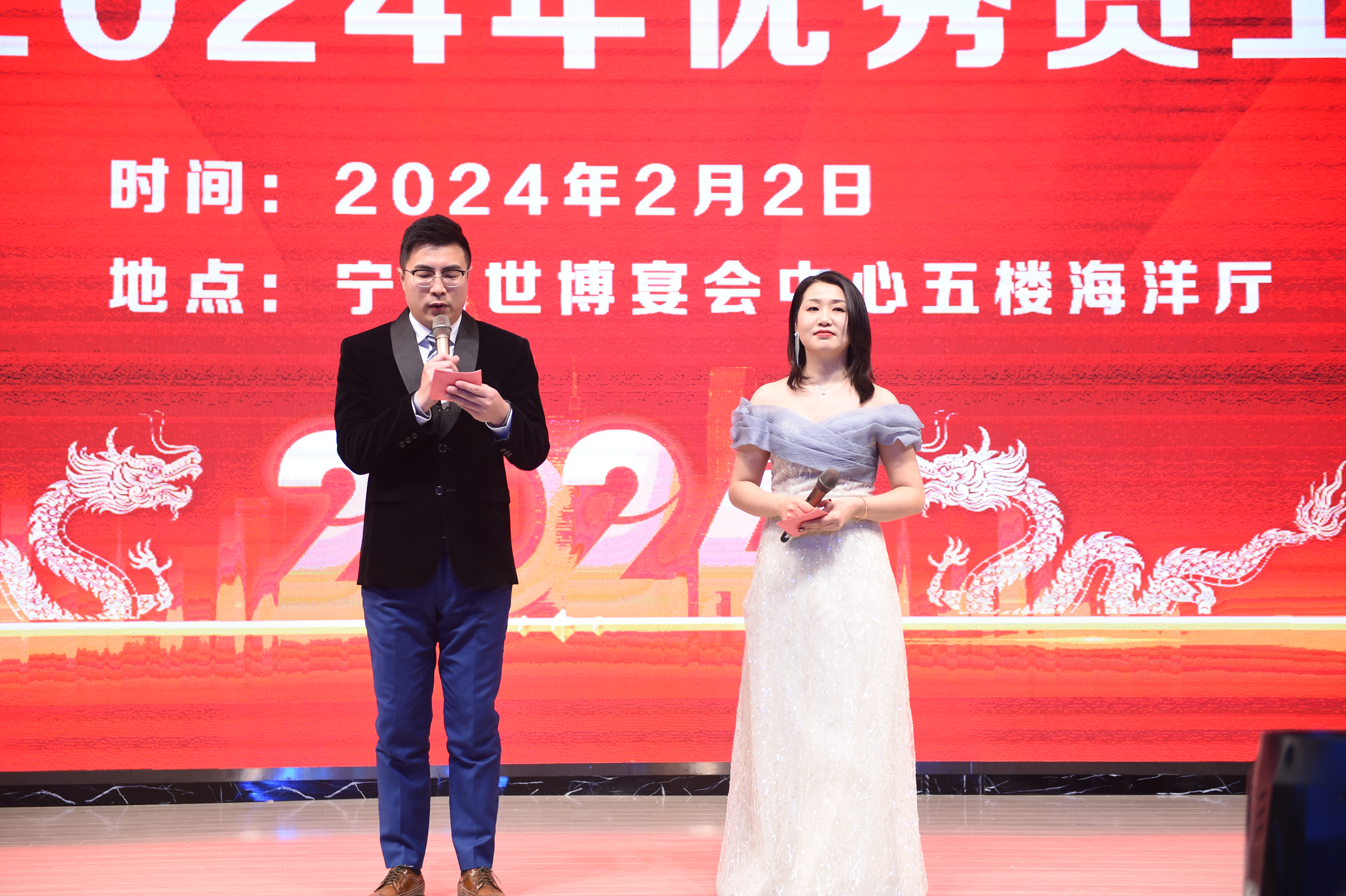龍騰虎躍慶盛事,馬到功成事業(yè)興,安徽瑞普橡塑有限公司年會(huì)由國際貿(mào)易部經(jīng)理和人力資源部經(jīng)理擔(dān)任主持人,瑞普2024年會(huì)在倆位主持人簡單而又大氣的開場白下正式拉開序幕。